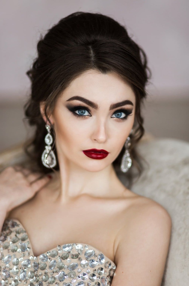 - Класика. Це поєднання виразних очей та яскравих губ. Яскрава червона або винна помада у поєднанні з акуратно підведеними очима та легким контуруванням створюють елегантний та витончений образ.